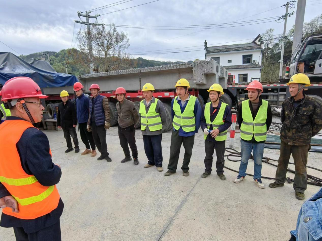 為了確保本次梁板架設(shè)成功,吊裝作業(yè)前公司及監(jiān)理單位、業(yè)主單位以及黃山市交通執(zhí)法大隊,共同對吊裝施工方案進行了討論,提出方案問題并整改;吊裝作業(yè)前公司安全部還對作業(yè)人員進行了安全技術(shù)交底,保障施工安全。