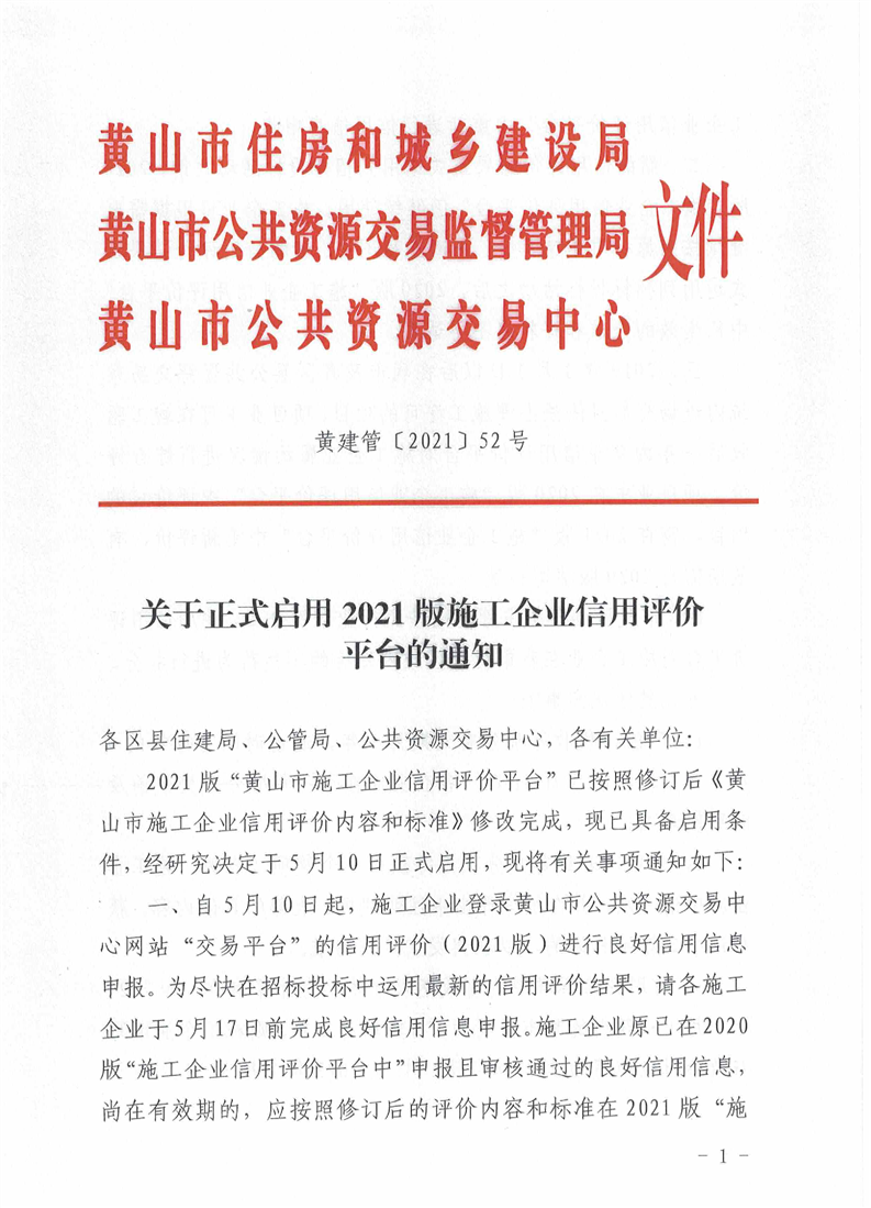 轉發(fā)關于正式啟用2021版施工企業(yè)信用評價平臺的通知